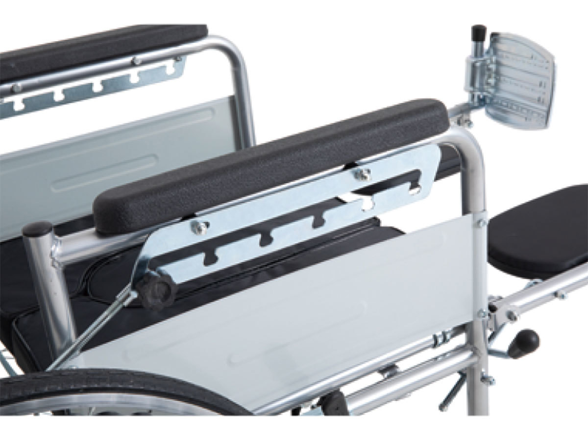 可折叠设计,收纳不占地,轻松出行;可拆卸的加高靠背,可根据自己需求安装;前后双手刹,推行车和乘坐者都可控制; 加厚海绵坐垫,久坐不累,实用大孔位便桶 ;从90 度到 180 度六档位靠背调节;配有护身安全带,长度可根据体型自行调节;皮革海绵护腿托,高度可调; 防后翻助力脚踏,向下防倒车,向下助力上坡。