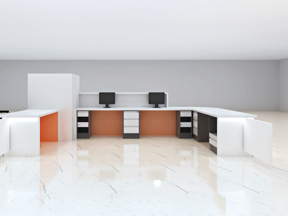 护士站工作台、导医台是在医院里的核心位置,承载着患者咨询、问询、就诊及转诊、挂号、查询等功能,在功能上实现智能服务系统,患者和病人家属可自助导览、查询就医流程,可办理一卡通人工咨询服务等。